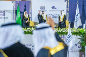 واضاف ” إن مِنْ يُمْن الرؤية السديدة وتتابع الآلاء والنعم على مملكتنا الحبيبة، هذا التكامل في المساعي والجهود، والاتساق المتناغم مع المستهدفات الوطنية، والتواؤمٍ بين مدخلات التعليم ونواتجه، ومتطلبات التنمية بكافة أفرعها ومجالاتها، وعلى هذا النهج والمنهاج الوطني تسير جامعة الإمام عبدالرحمن بن فيصل بما تمثله من صرح أكاديمي، ومعقل معرفي في قلب المنطقة الشرقية، يحتل مكانته العلمية المرموقة برؤية متطلعة نحو الريادة والتميز ، ورسالة تعكس عمادها الذي تقوم عليه باعتبارها بيئة خصبة معطاءة، ومصدر إشعاع حضاري وتنموي لنشر المعارف، وتمكين الإبداع، بشراكة فاعلة ومثمرة مع مختلف مؤسسات المجتمع وقطاعاته، ماضية في خطاها بمستهدفات وقواعد إستراتيجية داعمة للمسيرة التعليمية والخدمية، تحقق بها تطلعات ولاة الأمر أيدهم الله نحو رفع كفاءة الأداء المؤسسي، وتعزيز جودة التعليم، وتطوير البحث والابتكار، وتعزيز المسؤولية والشراكة المجتمعية وتأهيل وتنمية القدرات البشرية، وتحقيق التنمية المستدامة على كافة المستويات، تستمد عزمها بما تحظى به من دعم وثقة من لدن قيادتنا الرشيدة ممثلة بسموكم الكريم، ومتابعة حثيثة من قبل معالي وزير التعليم، وعمل دؤوب تقوده كفاءات وعقول نيرة لخلق أثر بنّاء في تأهيل جيل واعد متعدد الخبرات والمهارات، ومتميز في المكتسبات والكفايات، جيل متأهب متسلح يعي حجم طموح القادة وقدر آمالهم به، ويمضي متأسيًّا بخطاهم في البناء وعمارة الأرض، عازمًا على إحداث الأثر المأمول في نهضة المملكة، ومساعيها نحو التمركز في مكانها المستحق في مقدمة الدول، ضمن مناخ يتسم بالتنافسية والتسارع، والارتكاز على مكامن التميز العلمي، ومواطن الإبداع والابتكار لدى أبنائنا الشباب”