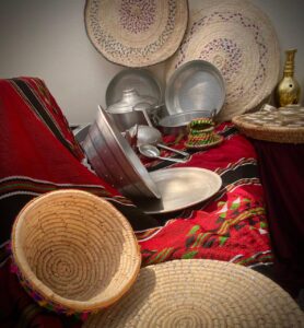 حيث تضمن البرنامج عدة اركان تراثية ومنها عرض للسعف والخوصيات، والاواني المنزلية ذات الطباع القديم. اضافة لركن خاص بتقديم الشاي والمشروبات الشعبية الساخنة، وركن للمأكولات الشعبية.