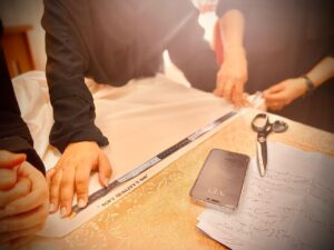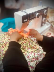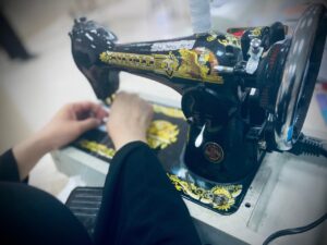 وارتكزت محاور الورشة على التدريب على خياطة إسدالات الصلاة ومريلات الطهي وأكياس القماش المنوعة.