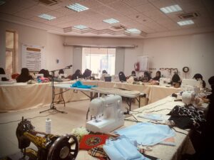 وهدفت الورشة إلى رفع قدرات المشاركات وتعزيز مهاراتهن وقدراتهن وتمكنيهن لدخول سوق العمل بكفاءة وإكسابهم خبرات جديدة في مجال الخياطة.