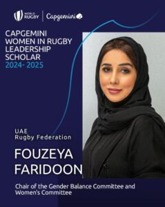 ووقع الاختيار على السيدة فوزية فريدون رئيسه الاتحاد الكرة النسائية وعضو الاتحاد الرجبي بدولة الإمارات ضمن هذه القائمة المختارة وتمتلك فريدون خبرات كبيرة ومسيرة مميزة في اللعبة والتي بدأتها منذ سنين وتمثل الآن الاتحاد الأسيوي والعربي للرجبي.