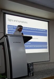 نظم قسم الطب الوقائي بشبكة القطيف الصحية، أحد مكونات تجمع الشرقية الصحي ندوة بعنوان (آخر مستجدات وباء جدري القردة) بقاعة المحاضرات بمستشفى القطيف المركزي.