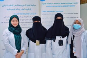 يذكر أن البرنامج في المستشفى تشرف عليه استشارية الأطفال د. غنيمة الزاهر بمشاركة فريق مثقفات الرضاعة الطبيعية وتثقيف الحمل وماقبل الولادة، واقسام النساء والولادة، والجودة وسلامة المريض و اقسام الاطفال، و التثقيف الصحي، والتمريض في أقسام التنويم وغرفة الولادة والعيادات الخارجية.