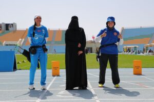 وصعدت الجنبي على منصة التتويج للقوس المركب إناث للسهم الأحمر بعد تغلبها على لاعبة الهلال نوف المليك.