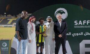 توج عضو مجلس إدارة الاتحاد السعودي لكرة القدم عبدالله فيصل حماد اليوم السبت فريق الاتحاد بكأس الدوري الممتاز للناشئين تحت 17 عاماً لموسم 2023-2024 وذلك بمقر النادي في جدة.