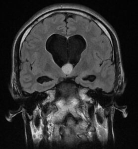 والكيس الغرواني عبارة عن كيس يحوي مادة جلاتينية في موقع حساس حيث يسد مجرى تصريف السائل الدماغي في الدماغ، مما يسبب الاستسقاء الدماغي وارتفاع ضغط الدماغ، وقد يتسبب بالوفاة المفاجئة لا سمح الله في نسبة ٣ – ٣٥% في بعض التقارير الطبية.