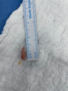 و استغرق الإجراء الجراحي أقل من ساعتين وتماثل المريض للشفاء بعد العملية ، ورجع لكامل وعيه في وقت قصير وبينت الأشعة بعد عملية استئصال الكيس بشكل كامل، عدم وجود نزف أو مضاعفات وتحسن الاستسقاء الدماغي بشكل ملحوظ.