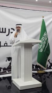 ثم أعقبتها كلمة سعادة وكيل الشؤون التعليمية الدكتور/هاني آل غزوي معرباً عن شكره البالغ للآباء والأبناء كما شكر أعضاء هيئة التدريس وأكد على مواصلة التعلم دون استسلام ، وأن الراحة والسعادة الحقيقية تكون في السعي والعمل ، وأن النجاح ليس خياراً وإنما هو قرار فمتى ماقرر الإنسان أن ينجح فهو حتماً سينجح ولو بعد حين ، فكانت هذه اللفتة الكريمة حافزاً ودافعاً بالنسبة للطلاب.