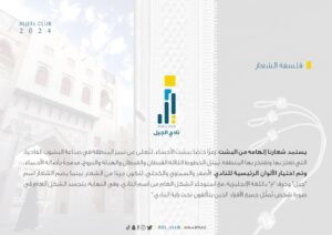 كما استمد الشعار إلهامه من البشت الأحسَائي ليمثل رمزاً يُفتخر به، فيما تُمثل الخطوط الثلاثة القبطان والقيطان والهيلة والبروج مدمجة بأصالة الأحساء، ليتجسد الشكل العام في صورة الإنسان والذي يسعى الكيان برسالته أن يكون النادي مركزاً لصناعة الأجيال.