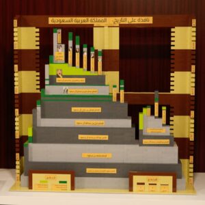 باستخدام أكثر من 18 ألف قطعة من قطع الليجو، شكل المواطن خالد سعيد العبدالله، مجسما لتاريخ الدولة السعودية وحكامها منذ نشأت إماراة الدرعية مرورا بالدولة السعودية الأولى ثم الثانية وأخيرا الثالثة، من خلال تصميم مجسم بارتفاع 212 سم وبعرض 153 سم، وهو يمثل غرس الماضي لحكام المملكة وسجلهم الزمني من تاريخ الولادة، مرورا بتاريخ تولي الحكم والوفاة.
