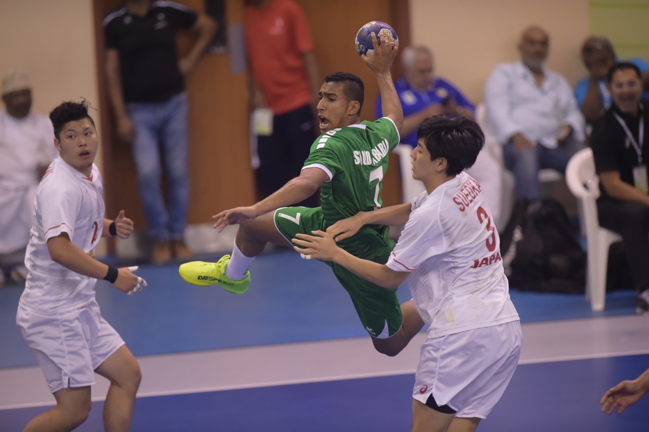 الصورة من مباراة شباب أخضر اليد مع اليابان.