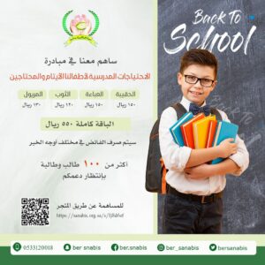 أطلقت جمعية البر الخيرية بسنابس اليوم، برنامج الحقيبة المدرسية والزي المدرسي، الذي تهدف من خلاله لتأمين حقائب مدرسية مجهزة بالضروريات الأساسية والملابس المدرسية للأطفال المحتاجين والأيتام.