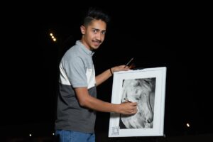 بهدف تنمية المواهب وابرازها وكانت الفعالية تحتوي على عدة أركان ومنها الرسم المباشر والرسم للأطفال والمعرض الفني الذي يحتوي على ٤٥ لوحة فنية معبرة
